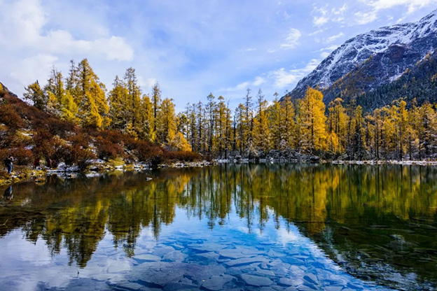 全天早上指定时间地点集合出发,大家务必准时千万不要迟到哦,请在出发前一天查好到达集合地点的路线,以及活动需要准备的行李。车上领队组织互动,讲解本次活动的相关注意事宜。经千年古堰——都江堰,沿岷江支流杂谷脑河谷一路向上,经汶川县城、理县、米亚罗(全程高速),到达阿坝首府马尔康。午餐可以在马尔康AA,午餐后,穿越经梦笔山隧道前往玛嘉沟,到达后,乘车前往银厂沟沟口,然后乘坐中转车,约30分钟到达银厂沟牛棚(徒步起点),漫山的彩林就在眼前,也可以跟随领队的步伐前往色尔压措(下鱼海子,单边约3公里),沿途河流,森林,草甸牛群,高山海子,尽收眼底,绝对是是一个眼睛和心灵都特别被治愈的地方,到最顶上还可以选择在海子附近发呆,安安静静地与大自然相处。适时返回酒店入住