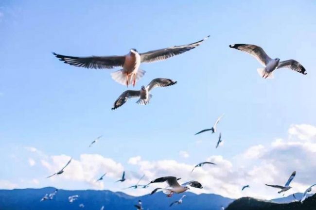 3、你也可以选择在客栈楼顶上晒晒太阳,观冬季特有的红嘴鸥觅食嬉戏,听着草海里的一片蛙声,看水鸟飞驰,发发呆,思考人生;