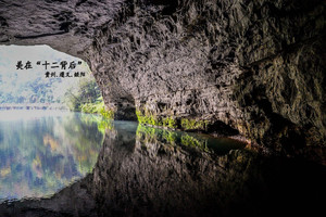 地下河谷,石壁造型多纹路美艳,河水碧绿深幽,仿佛世间最伟大的艺术臻品。洞内还有盲鱼、野生娃娃鱼等罕见的洞穴生物。