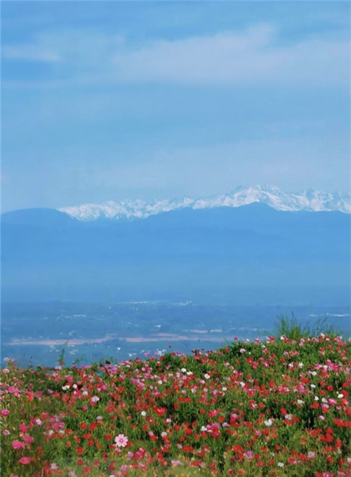 在长秋月观景台眺望连绵群山后,走进旁边的高山花海,邂逅中华木绣球、月季、鼠尾草、大丽花与波斯菊共同编织的长秋山四季景致。国庆期间,花海中的野生地摊集市悄然绽放,让蒲江的烟火气在山巅自由蔓延,等您“TAN”索!