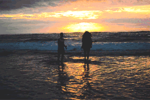 金滩之沙金黄、细腻而柔软,纯天然的沙滩延绵数十里,站在金滩上,迎着海风,隔着蔚蓝色的海水,可以遥望西南方向水天一色的越南海景。