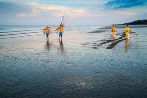 来到京族三岛,你一定要早起一次,跟着京族渔民乘船一起出海,体验捕鱼的乐趣。看看当地人在海洋里杰出的捕鱼本领,深入了解渔民出海捕鱼的生活方式。出海去咯,能不能捕到鱼就得看你的运气啦,收获归大家所有。