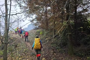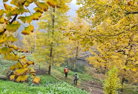 两峰对峙,层林尽染,大山深处的四基坪,正是徒步穿越最美的时候。