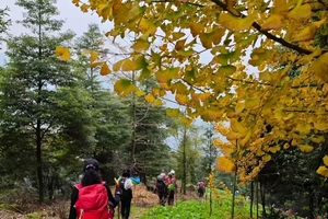 四基坪的银杏,均为村民种植的经济作物,树龄不长,大树不多。但,当她们集结成林,犹如天女散花般分布山峰山谷,其势依然慰为壮观。绿色的森林,鲜艳的红叶,点缀片片黄叶之间,让巍峨的大山,五彩缤纷,魅力无限。