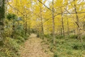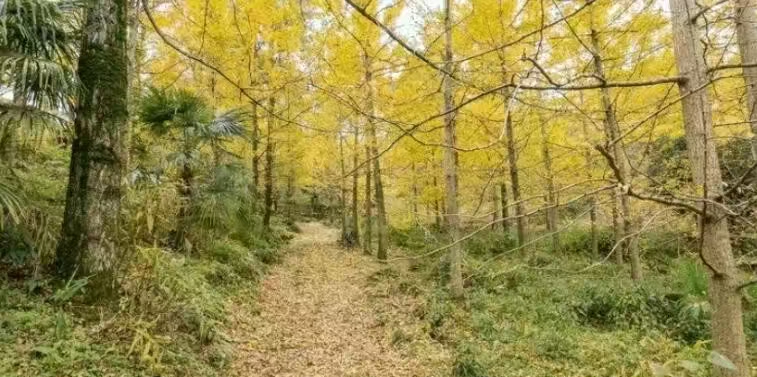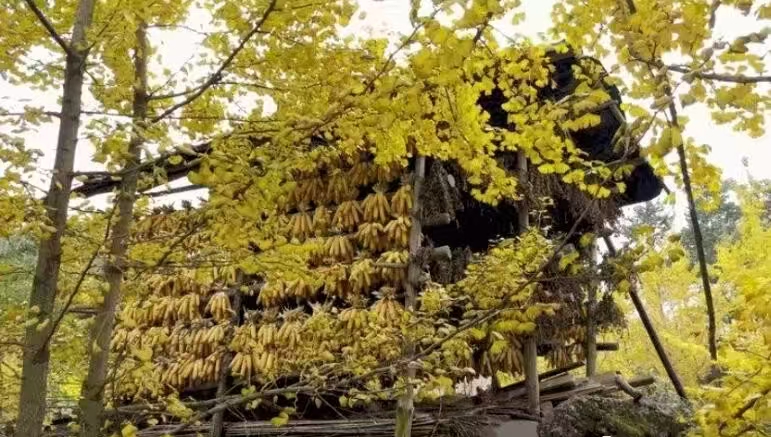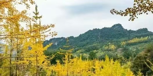 在大埂和马羚岩两座大山的巅峰之间,一片片金黄的银杏林,星罗棋布的分散在平缓的山坡上。