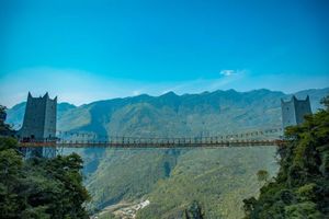情人桥飞跨于两座峭壁之上,离地面整整有300多米高。脚下是悬空的山谷,眼前是漫山的树木,耳畔是呼呼的微风,既刺激又浪漫!